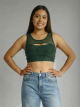 Esta blusa crop top brillante es una prenda imprescindible para cualquier guardarropa moderno.