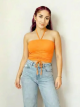 Esta blusa halter de tirantes presenta un diseño único con fruncido al frente, ideal para cualquier ocasión.