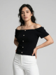 Blusa off-shoulder con delicados botones, perfecta para cualquier ocasión.
