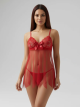 BabyDoll con encaje transparente y lazo, perfecto para ocasiones especiales.